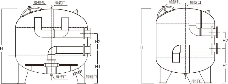 內(nèi)部管件全采用不鏽鋼材料,使用壽命長(zhǎng),內(nèi)結(jié)構(gòu)與主罐體采用法蘭連接,便于安裝、維修;集水系統(tǒng)結(jié)構(gòu)合理,集水均勻、逆洗徹底;雙視鏡觀察窗,真正能見(jiàn)內(nèi)部濾膜,水質(zhì)變化;下設(shè)放空口,需要維修時(shí),可從泄水口放空過(guò)濾器內(nèi)的水,便于更換濾料;並可從卸料孔泄出濾料,減輕勞動(dòng)強(qiáng)度。