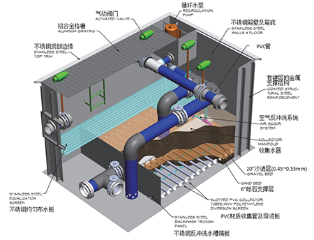 3. 不板結濾沙,長期運行不影響過濾效果,而且不需更換濾沙:瑞萊斯真空過濾器結合了獨一無二的“脈沖壓縮空氣”反沖洗技術,從根本上解決了所有傳統的過濾器存在的有機物或細菌被氧化后形成濾沙板結現象。
